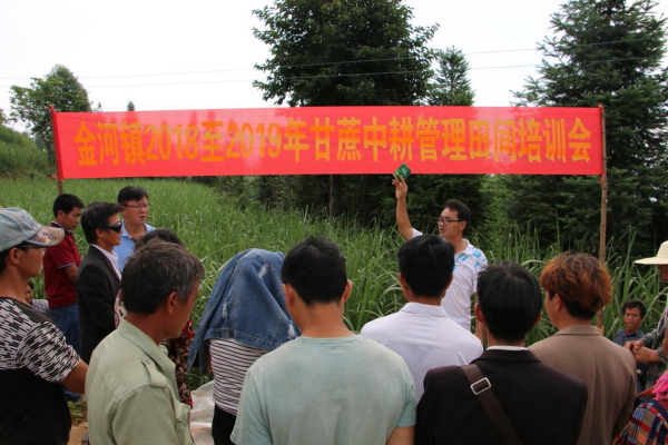 针对当前甘蔗生产中存在的困难和实际问题,金河镇党委、政府高度重视当前甘蔗生产工作,及时调研和分析甘蔗生产工作并及早作出安排部署,加大中耕管理科技推广力度、注重科技到位率、狠抓科技落实,从科技上争单产、管理上争效益。在县糖办、金珂集团糖业有限公司指导支持、协助下,以蔗区村为单位,分期分片进行以施肥、除草、病虫害防治、雨季排水为主的甘蔗中耕管理现场培训。