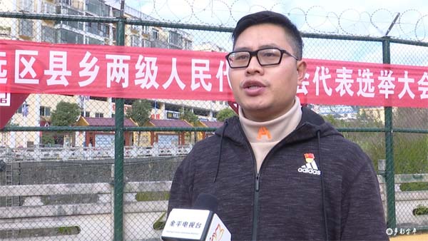 金河镇工作人员张云强:作为一个选民,拥有选举权是法律赋予我的神圣权利,很开心今天能在这个场合投出我们县级和镇级人大代表,希望代表能更好地带领群众共同致富。