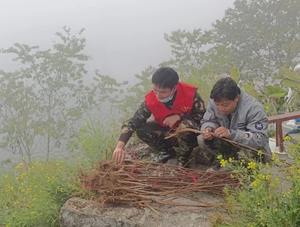 此次活动栽种的为黄桃苗木。为提高苗木栽种成活率,确保每一株黄桃苗木科学、规范栽种,技术人员就黄桃苗木种植过程的打塘、苗木放置、泥土回填、浇水等作了详细讲解,并现场示范种植。在植树现场,大家干劲十足,三五成组,挥锹铲土、扶正苗木、培土围堰,认真细致完成每一道植树工序。通过两小时的忙碌,机关所在地500株新栽种的树苗在春风里迎风挺立,换发勃勃生机。其余2500株由9个村委会组织人员完成栽种。