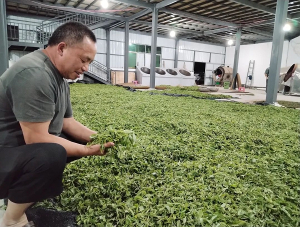 眼下,正是清明前采摘茶的关键时节,牛滚塘村委会高城寨村小组的牛滚塘茶叶专业合作社里随处可见茶叶收购商、茶农和工作人员忙碌的身影,处处洋溢着丰收的喜悦。每当傍晚,从茶农手中收购完鲜茶的商户就开着小货车、三轮车将当天从各村收购来的鲜茶统一送到牛滚塘茶叶专业合作社,也有茶农用摩托车或徒步将自己当天采摘来的鲜茶直接送来合作社。合作社根据茶商和市场的要求连夜将鲜茶加工成干茶。