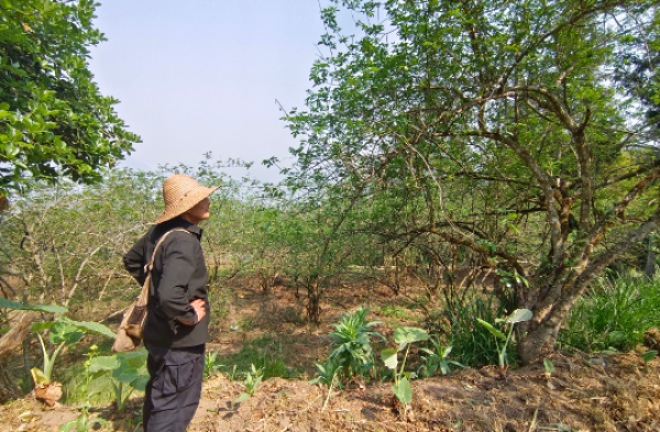 在牛滚塘村滑石板村小组熊照家门口,有一个小菜园,首先映入眼帘的是高大八角树,近看才发现叶片下藏着的八角,一颗颗饱满剔透,就快成熟可以采摘。旁边是稍矮的花椒树,空气中弥漫着花椒的麻香味。院子里还种橘子、蔬菜等作物。