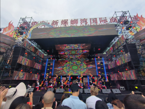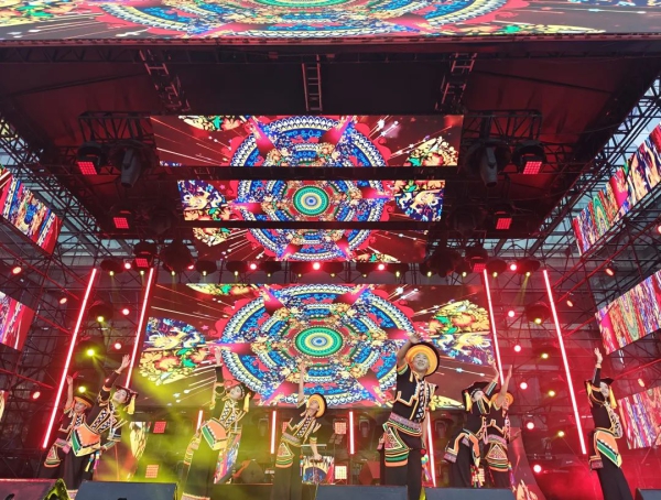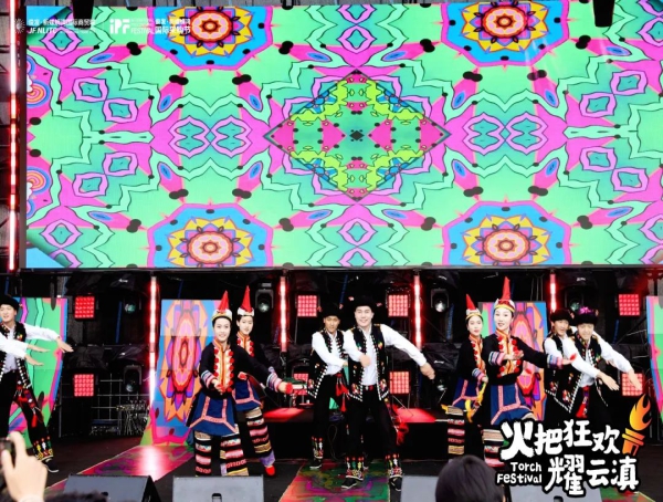 整场晚会以乐队演出、电音派对为主基调,金平县民族歌舞团的到来以鲜明的民族特色吸引了观众的眼球,为晚会增添了浓浓的民族气息。演员以精湛的舞技和独特的艺术风格,展现了中华民族丰富多彩的舞蹈文化和深厚的民族情感。观众们被舞者们精湛的舞技和独特的艺术魅力深深吸引,领略到了中华民族丰富多彩的舞蹈文化,感受到了各民族之间团结和谐、共同发展的美好愿景。