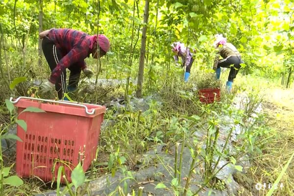 在果棚中,工人们正在忙着施肥和除草,他们中多数是周边村寨群众,果园基地的建设为他们提供了务工条件,在家门口就能找到工作。
