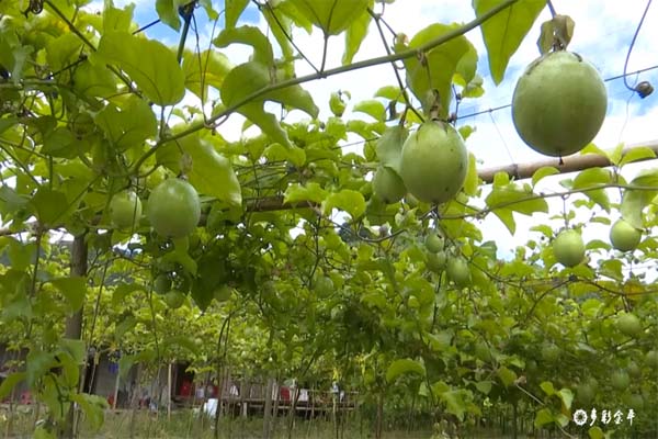 在者米乡顶青村委会,潍坊得利集团千亩种植基地内百香果棚架一个连着一个,远远望去,翠色欲流,宛如诗中“春来江水绿如蓝”一般。