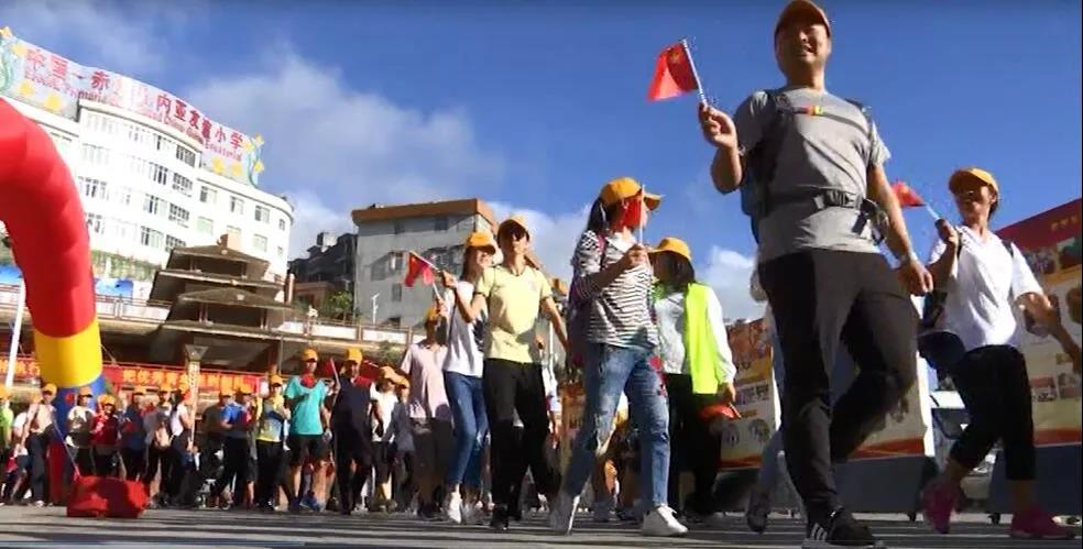 为庆祝中华人民共和国成立70周年,倡导全民健身的良好氛围,凝聚力量全面决胜脱贫攻坚。9月12日,我县开展“迎国庆.强体质.决战脱贫攻坚”2019花果山徒步活动。县委和县级国家机关各部委办局,各人民团体、企事业单位等400余名干部职工参加活动。