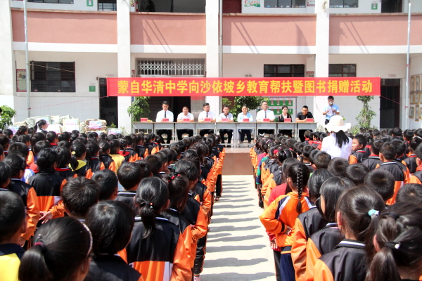 5月6日,蒙自华清中学到沙依坡乡中心小学举行教育帮扶暨图书捐赠仪式,县委常委、副县长陈来三,沙依坡乡人民政府乡长李烈,县教育体育局副局长王明仙出席仪式。