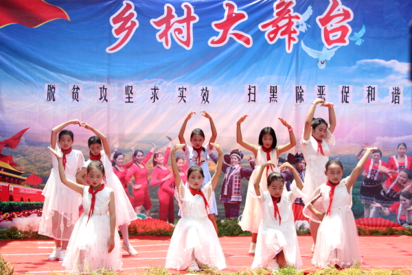 随着精彩节目依次登场,演出现场村民们越聚越多,《放爱大草原》《最炫民族风》《踏浪》《七月火把节》等大家喜闻乐见的文艺节目博得了观众的阵阵掌声,丰富了村民们精神文化生活。金水中心校四年级学生的舞蹈《不想长大》,金水驻村工作队员朗诵的《扶贫礼赞》《扫黑除恶,我们在行动》更是将现场气氛推上高潮。