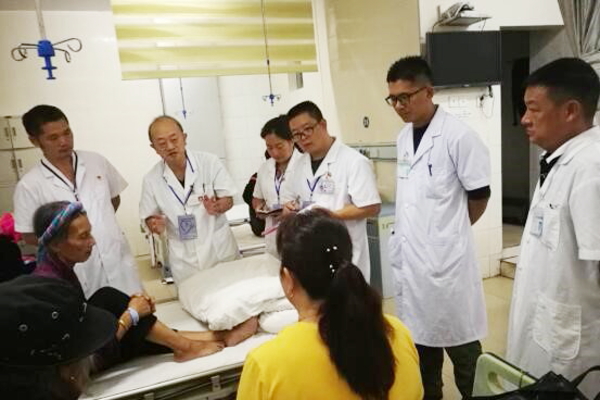 专家组首先深入到县人民医院看望慰问了南科灾区转入县医院住院的12名患者,与他们亲切交谈,并对3位存在急性应激障碍的患者给予了心理疏导。