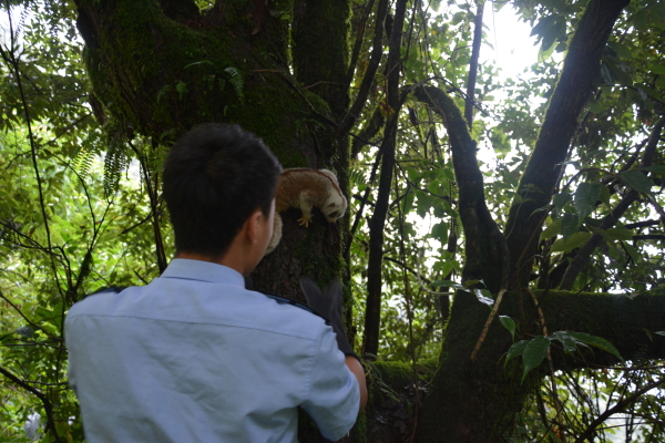 经森林公安民警对这只蜂猴仔细检查后,发现其除右眼残疾外并无其他体表外伤,民警拿了些水和水果进行喂食观测,其生命体征良好,符合放归自然条件,随即驱车前往适合其生存的分水岭国家级自然保护区内,将它安全送回到了大自然的怀抱中。