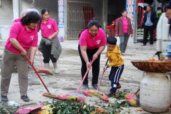巾帼志愿服务队组织清扫集市干道