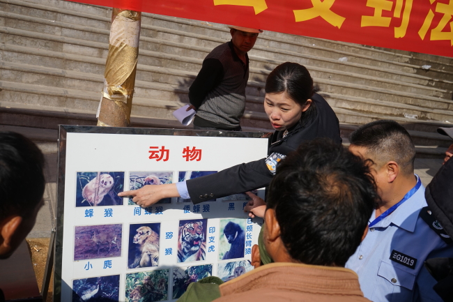 此次宣传活动悬挂2条横幅宣传标语,展示野生动植物图片展板8块,向群众发放野生动植物宣传资料1600余份,发放印有保护野生动植物文字、图案的礼品800余份,参与和咨询群众3000余人。组织出动执法人员11人,对金综农贸市场和荣联农贸市场开展联合执法检查,收缴鸟类4只,竹鼠1只。