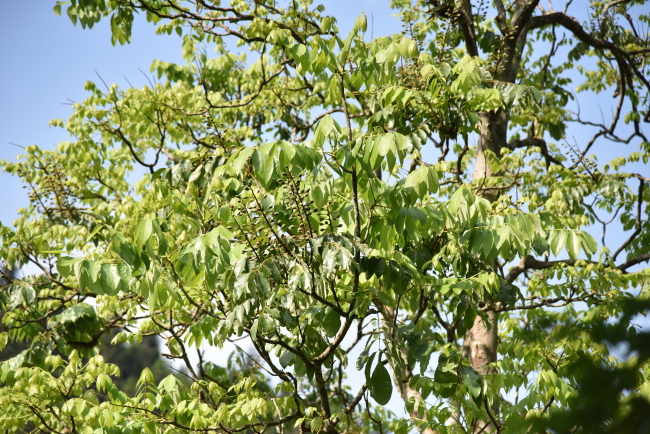 近日,云南金平分水岭国家级自然保护区管护局科研人员在开展野外调查时,在金平县大寨乡水尾村意外发现了20余株被誉为“植物中龙凤”的国家一级重点保护野生植物伯乐树。伯乐树为落叶乔木,又名钟萼木或山桃花,高可达20米,树冠塔形,树皮褐色,光滑,有块状灰白斑点。叶为奇数羽状复叶,椭圆形或倒卵形,叶背粉白色,密被棕色短柔毛。