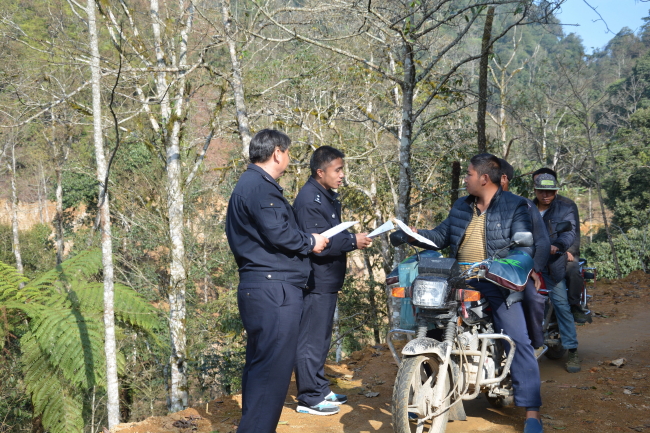 金平森林公安民警向周边村寨人民群众进行伯乐树宣传