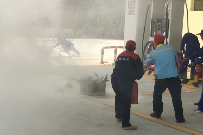 演练预设三个警情,分别是“加油区着火灭火”、“卸油区灭火”、“加油站防暴恐”三个部分。同时参与演练人员按职责划分了灭火抢险组、警戒组、通讯联络组及救护组共4个行动组。