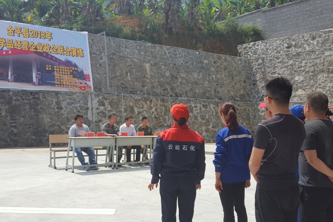 为加强加油站危险化学品事故以及暴恐事件意外人身伤害事故管理,对突发的事故实施有效救援抢险,最大限度地降低事故危害程度和灾害损失,提高员工应急反应和救助能力,保障人民生命、财产安全,保护环境,根据《生产安全事故应急预案管理办法》、《金平县危险化学品生产安全事故应急救援预案》,金平县在勐桥乡环晟加油站开展了2018年危险化学品经营企业政企联合演练。