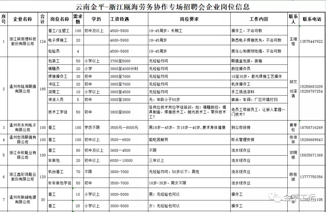 为认真贯彻落实习近平总书记提出的“就业是最大的民生、确保零就业家庭动态清零、增加就业是最有效最直接的脱贫方式”等重要讲话精神及省、州、县党委政府对就业扶贫工作的有关要求,加快推进我县劳务输出组织化程度,坚决打好就业扶贫硬仗,实施有针对性的供需对接等服务,更好地满足疫情后农村劳动者转移就业需求和企业用工需要,大力推进农村劳动力转移就业。我县将举办云南金平浙江瓯海劳务协作专场招聘会,现将有关事项通知如下: