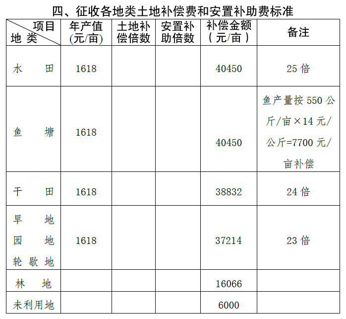 征收土地、地上附着物和青苗的补偿标准及房屋拆迁补偿标准按照《金平县人民医院整体迁建和中医医院新建项目征地拆迁补偿方案》(金政发﹝2018﹞5号)文件执行。农业人口安置办法按有关法律法规、政策的规定执行。