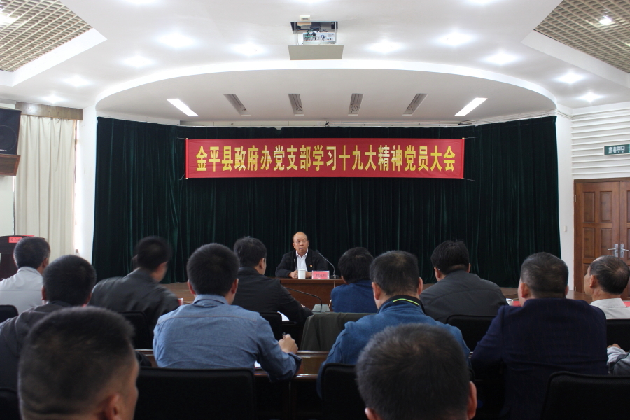 11月6日下午,县政府办党支部召开党员大会,聆听了我县金水河镇广西寨村党支部书记、十九大代表刘富珠宣讲党的十九大精神。县委副书记、县长白玉文主持会议,会议还邀请了离退休党支部党员,两个支部共有38名党员到场参加了活动。