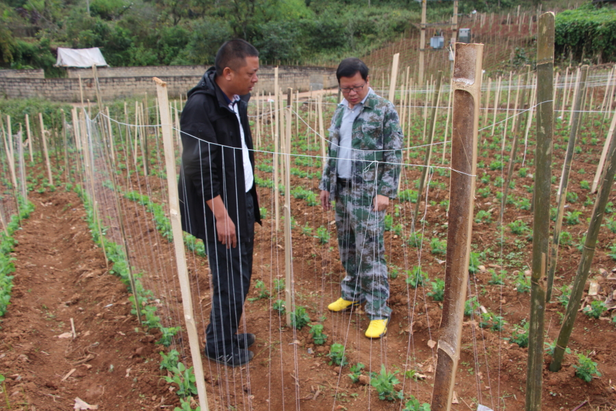 黎宁到营盘乡水塘村委会实地查看台湾长寿仁豌豆项目种植情况,与村委会干部、农户亲切交流,了解长寿仁豌豆种植规模、推进情况。在听取了村委会干部、农户对种植优势、遇到的困难等反映后,黎副主任提出,要利用好长寿仁豌豆种植即合理利用土地资源又“短平快”的优势,找准问题原因抓牢根基,要与豌豆种植技术人员多沟通联系克服困难。