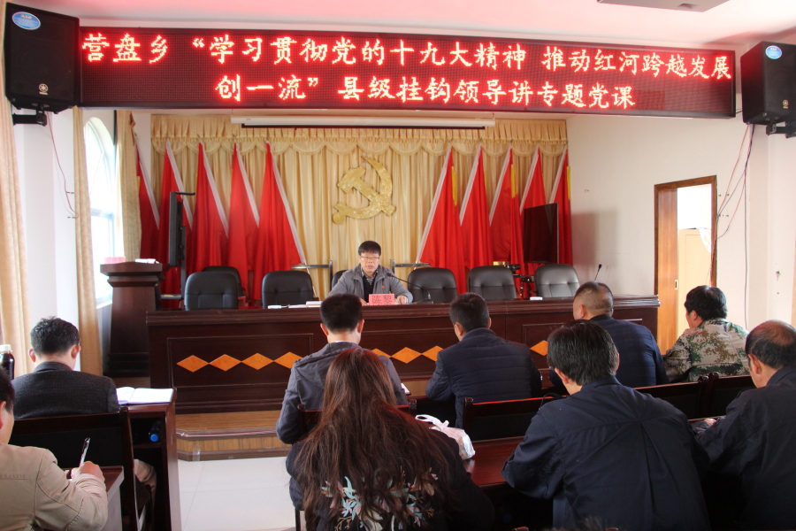 11月29日,县委常委、县人民政府常务副县长陈黎到营盘乡宣讲“学习贯彻党的十九大精神,推动红河跨越发展创一流”专题党课,乡机关全体干部职工、村三委班子参加会议。