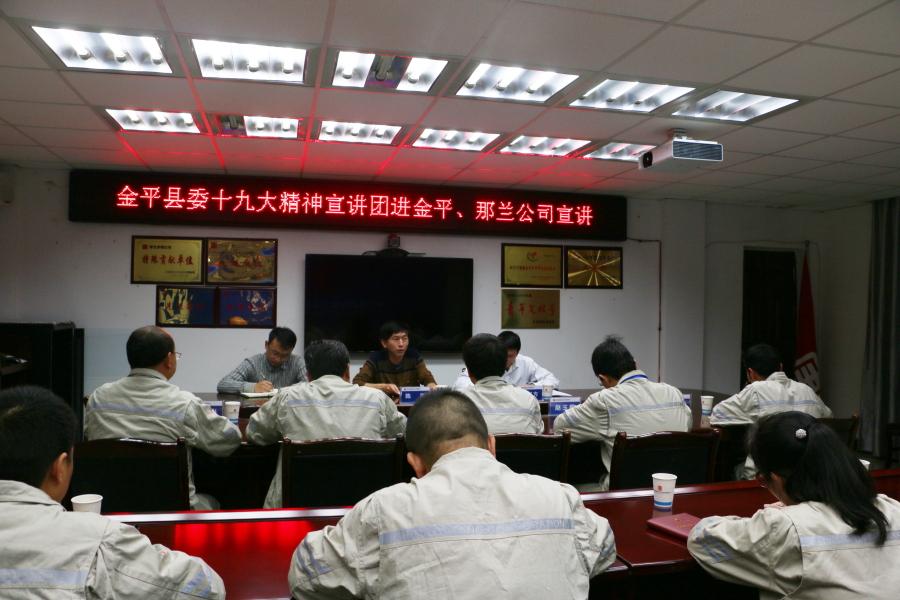 12月14日,县委常委、县人民政府副县长陈刚在县工商信局局长何宝方的陪同下,深入云南大唐国际那兰水电开发有限公司宣讲党的十九大精神,把党的十九大的声音传达到企业干部群众中间,把企业的思想和力量凝聚到党的十九大精神上来。