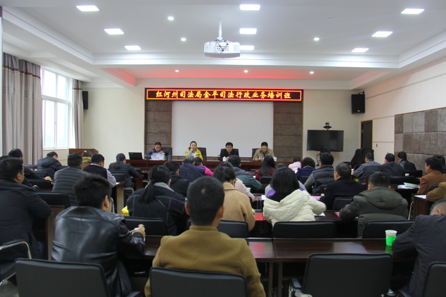 为依法规范实施社区矫正,将社区矫正人员改造成为守法公民,12月12日,金平县司法局创新形式举办社区矫正业务知识培训班。此次培训改变了以往墨守成规的方式进行:一是改变以往由社区矫正股工作人员讲解业务知识,传达上级相关文件精神的方式,有幸邀请到州局原副局长孙永福、金平县检察院刑事执行检察局负责人王琳、县疾病预防控制中心副主任兼艾滋病科科长朱煜芸前来授课。二是参会人员除了司法所工作人员外,还邀请了金河镇社区及村委会主任参会,充分贯彻落实《社区矫正实施办法》中有关部门、村(居)民委员会、社区矫正人员所在单位、就读学校、家庭成员或者监护人、保证人等协助社区矫正机构进行社区矫正的规定,不让矫正小组形同虚设。
