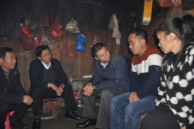 1月3日,红河州州委常委、州委组织部部长刘申寿深入大寨乡走访慰问贫困户。金平县委书记杨国椿同志及大寨乡主要领导陪同慰问。
