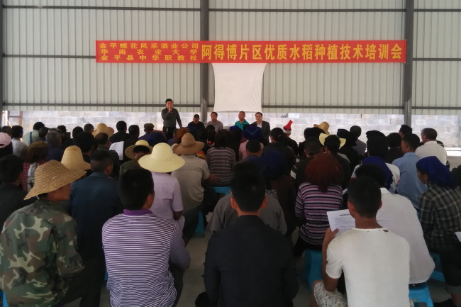3月6日-7日,金平县职教社联合金平蝶花风采酒业有限公司、华南农业大学分别在阿得博乡和马鞍底乡开展优质水稻种植培训班2期,来自阿得博乡、金河镇、大寨乡、马鞍底乡的水稻种植户299人参加技术培训。