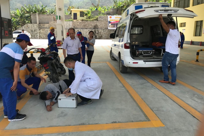 为加强加油站危险化学品事故以及暴恐事件意外人身伤害事故管理,对突发的事故实施有效救援抢险,最大限度地降低事故危害程度和灾害损失,提高员工应急反应和救助能力,保障人民生命、财产安全,保护环境,根据《生产安全事故应急预案管理办法》、《金平县危险化学品生产安全事故应急救援预案》,金平县在勐桥乡环晟加油站开展了2018年危险化学品经营企业政企联合演练。