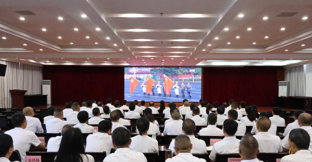铭记历史功勋,凝聚奋进力量。9月3日,纪念中国人民抗日战争暨世界反法西斯战争胜利80周年大会在北京天安门广场隆重举行。中共中央总书记、国家主席、中央军委主席习近平出席大会并发表重要讲话。我县组织县委、县人大、县政府、县政协领导班子成员,以及县委和县级国家机关各部委办局、各人民团体、企事业单位主要负责同志集中收听收看大会直播,共同见证庄严时刻,缅怀革命先烈,感悟历史荣光。