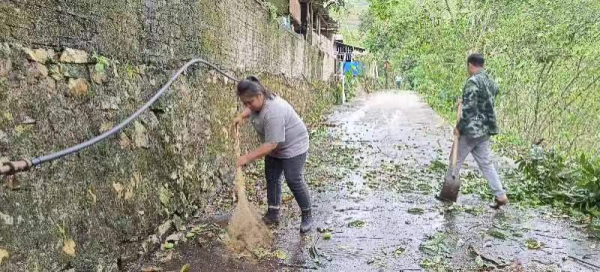 连日来,连续性降雨导致街区路面出现积水、淤泥、淤沙等情况,影响居民出行。金平县农场社区组织志愿者开展雨后清洗保洁活动,恢复雨后道路环境卫生整洁。