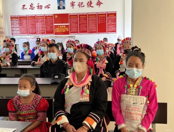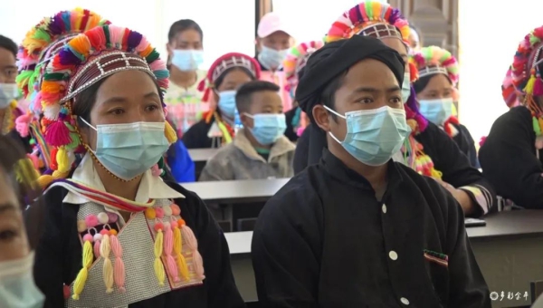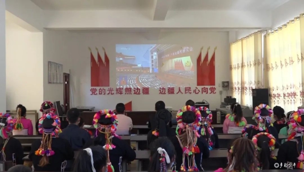 在座无虚席的南科村活动室,从搬出深山、实施安居工程、住上新房、发展产业、整族脱贫,与全国全省全州同步迈向全面小康、实现“一步跨千年”的布朗族(莽人)、拉祜族(苦聪人)四十余名群众身着盛装,齐聚一堂,积极收听收看大会直播盛况,认真聆听了习近平同志在大会上所作的工作报告。
