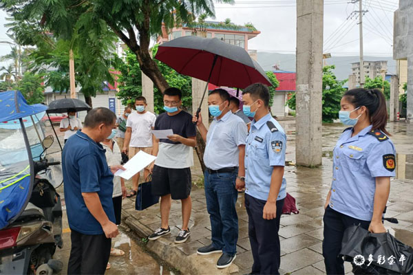 营造氛围增强意识。为进一步营造“全民抗疫”氛围,增强全镇人民群众疫情防控意识,勐拉镇采取综合宣传模式,强化宣传力度。一是将集镇中心划分为8个片区,组建8支宣传劝告小分队,联合勐拉派出所和勐拉市场监督管理所向集镇中心涉及各类茶室、棋牌室、网吧、KTV、酒吧、洗浴、足疗、美容店、个体诊所等人员密集场所发放《暂停营业告知书》,向业主讲解疫情防控相关知识和政策,并要求8月14日起暂停营业。复市时间以金平县疫情防控指挥部通知为准。二是将《勐拉镇关于暂停辖区内赶集和严控农村集体聚餐的通告》录制成音频发至各村组微信、QQ群,并利用应急广播和“村村响”早晚循环播放音频3次以上,不断提高群众对《通告》的知晓率,扩大宣传面。(勐拉镇 杜维秀)