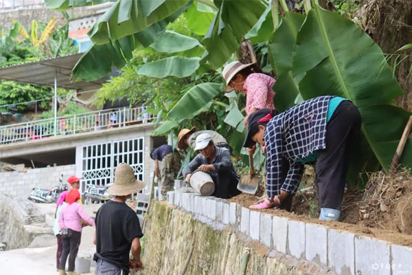 顶烈日,冒酷暑,党员干部带头发扬“特别能吃苦、特别能战斗、特别能奉献”的精神,掀起支部组织引领、党员带头示范、群众自觉参与的美丽乡村建设热潮,群众义务投工具、投劳力、投创意、投技术,发挥自己所长共建美丽家园。党员群众一道,砌围墙,修挡墙,扩宽村内狭窄路段,编制竹子篱笆网,切实做到垃圾清理到位、物品堆放整齐、环境整洁干净,形成了“人人参与、个个作为、户户共建”的浓厚氛围。