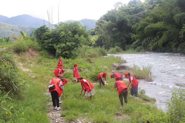 连日来,者米乡狂降大雨导致河水暴涨,者米河岸边堆着从上游冲来的大量垃圾,严重污染河流,影响环境。者米乡新时代文明实践所迅速做出响应发出倡议,号召广大青年志愿者参与到“保卫母亲河”活动中。志愿者们纷纷回应,头顶小红帽,身披志愿服,带上工具来到者米河畔,对河道旁的枯枝杂草、塑料袋、饮料瓶等白色垃圾进行清扫,虽然河道垃圾较多,清理起来难度较大,但志愿者们不怕苦、不畏累、不惧脏,长时间俯着身子清理垃圾,充分展示了者米乡新时代文明实践所志愿者们吃苦耐劳、敢于奉献、热忱服务的优秀品格。通过志愿者两个小时的不懈努力,共清理垃圾120余处。