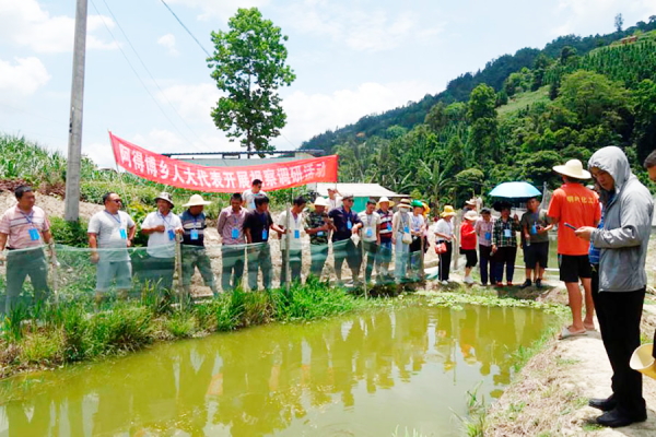 (图为:视察泥鳅养殖基地)