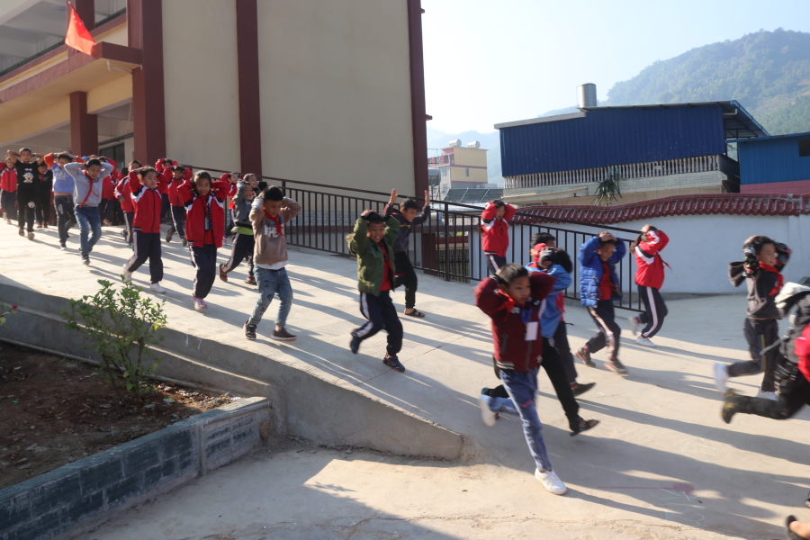 在此次活动中全体师生首先开展了地震灾害减灾防灾安全逃生演练,随着警报声拉响各班同学们有序撤离到安全空旷地带,在整个演练过程中同学们紧张有序、协调配合,达到了预期目的。随后派出所民警又为同学们带来了精彩的应急处突演练,活动模拟老勐小学受到两名暴恐分子的袭击,有多名学生受伤,在学校保安无力制止的情况下,学校老师拨打了报警电话,老勐派出所警员们接到警情后,立即组织出动一举将歹徒制服。