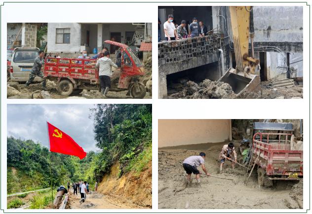 此次降水导致全镇范围内出现11条道路受损,塌方31处,堵塞道路58公里。在枯岔河村,金河镇组织挖机2台、渣土车6台,清除村内淤泥3000余方,疏通入村道路251米,为下一步灾害核心区治理重建、群众有序返家开展自救提供了救援通道。在其他区域,各级党组织带领党员群众1000余人就近参与保通疏堵,配合机械有效疏通农村公路9条48公里,清除土石方量2200方,排除险情9处,疏通的道路成为保障人民群众的生命通道。