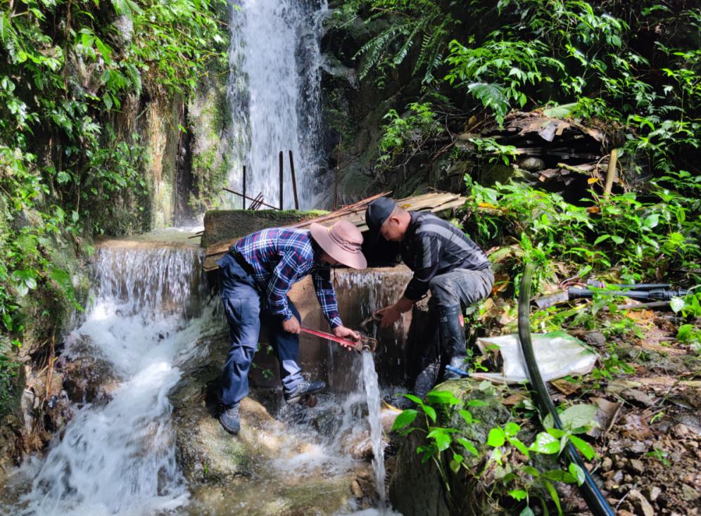此次强降水致使全镇供水管网出现不同程度损毁,管道截断6000余米,中转沉淀池、蓄水池损坏4座120立方。为解决群众供水的迫切需求,金河镇迅速组织人员进行抢修,在抢修恢复进程中,水利站工作人员赶赴水源地对水质状况进行实地踏勘并实施消毒作业。截至目前,镇水利站累计组织63人开展绵竹棚、枯岔河、瑶家新寨三个受损严重村寨供水管线铺设,共架设管线4000余米,解决了272户1190人的饮用水需求,牢牢守护群众用水安全。
