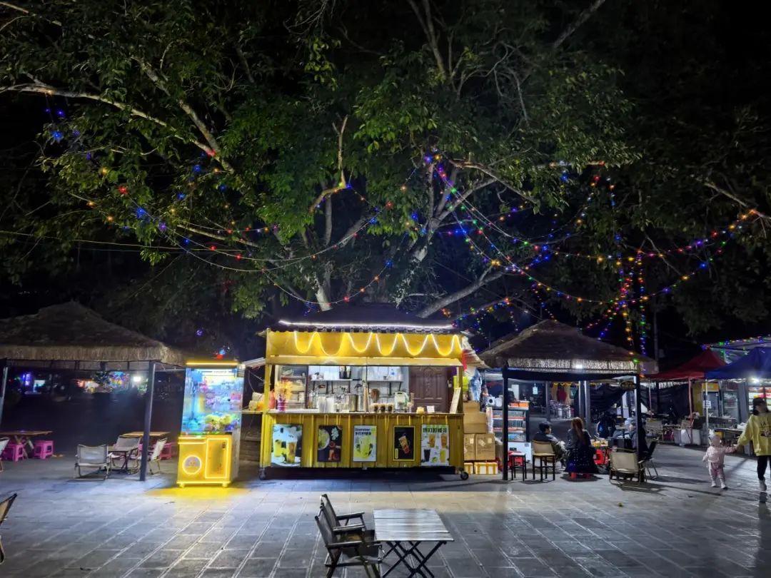 合作联动,让人气“聚”起来。党组织领办的金平瑞新合作社,在夜市发展中勇挑重担。通过前期精心筹备,在全镇广泛开展宣传,激发各类商户参与管理意愿;在运营中,施行精细化管理,科学合理规划摊位与群众休闲区域,积极完善环境卫生维护与治安保障。广场“夜市”投入运行后,充分听取入驻商户和消费群众的意见和建议,不断优化经营与服务。截至目前,41家涵盖美食、娱乐、购物等多元业态的商户纷纷入驻镇民族团结进步广场,让夜市人气爆棚,热闹景象随处可见。