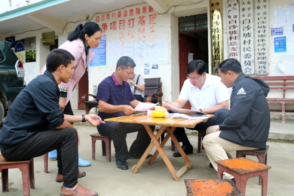大寨乡白沙坡村委会现场调度并查阅台账资料