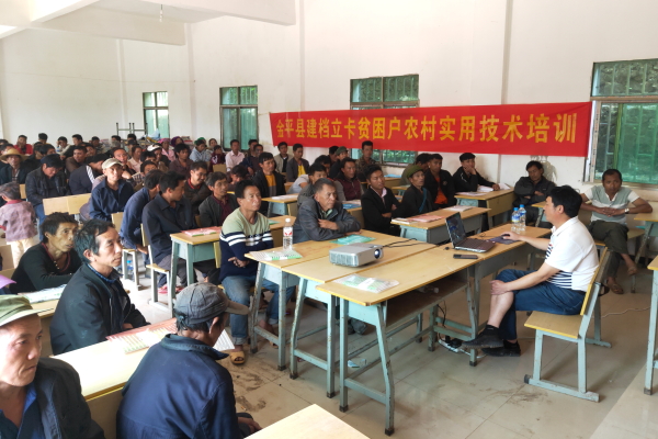 2月25日至3月3日,金平县第二期建档立卡贫困户农村实用技术培训班相继在老集寨乡团结村委会、清水小学、马撒斯村委会、金竹寨村委会、大竹棚村委会举行,本次培训会由县农业农村和科技局、畜牧局、金平农场专业技术人员为老集寨乡730名建档立卡贫困户进行现场培训。