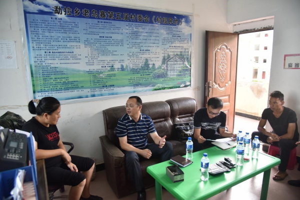 范俊杰来到勐拉镇老乌寨村委会,对该村驻村扶贫工作队员给予了亲切问候,并详细了解他们的吃住行和办公环境,鼓励他们不畏困难,继续迎难而上,切实把脱贫攻坚各项工作做深、做细、做实、做出成效。