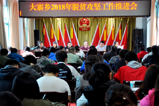 会议首先传达学习了脱贫攻坚相关文件精神,对大寨乡2018年预脱贫贫困户干部职工包户名册进行公布,进一步夯实脱贫攻坚工作开展,压实挂包责任。还对贫困人口退出六条标准和贫困村退出十条标准进行了学习巩固。并针对全乡脱贫工作实际情况,部署了全乡近期脱贫攻坚工作。