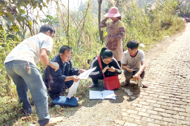 为了确保按时完成贫困村项目规划入库工作,培训会结束后,驻村工作队员与村委会人员分组及时赴村寨开展入户调查工作,在调查工作中工作队员们不分昼夜,冒着狂风暴雨,沿着崎岖山路,挑灯夜战,深入农户家中、田间地脚调查、了解情况。结合太阳寨村委会大多数村小组交通不便、土地瘠薄、经济产业发展滞后和抵御风险能力弱等实际情况,工作队员们与村民进行了交流,认真倾听群众心声,为下一步精准施策打好基础。