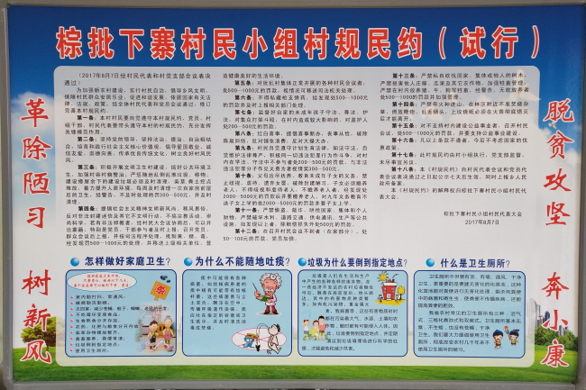 五是“自强、诚信、感恩”主题实践活动深入开展。努力营造全民自力更生、诚信友善、知恩感恩的浓厚氛围,激发贫困户自我发展的活力;完善村规民约,制定革除陋习机制,每户悬挂《老集寨乡革除陋习“八提倡八反对”》,村民自我管理自我约束能力有所提高。