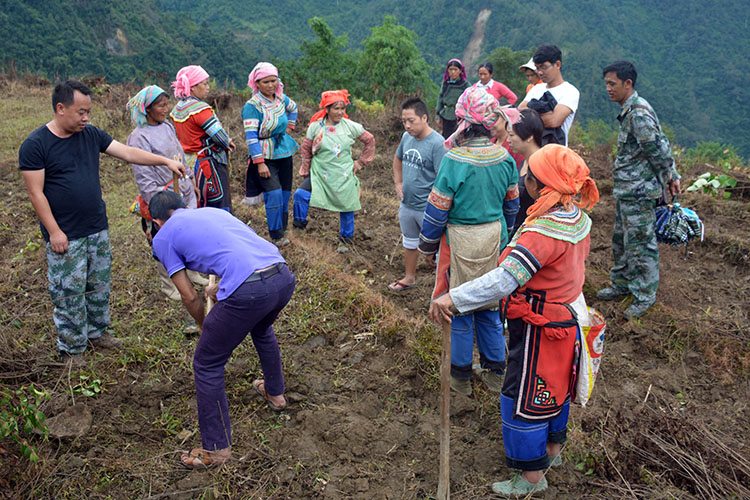 技术员指导蚕豆种植