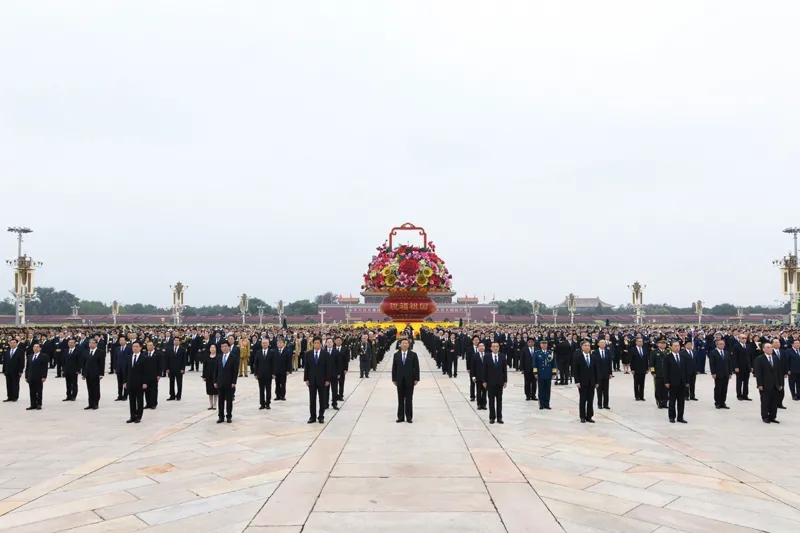 9月30日上午,党和国家领导人习近平、李克强、栗战书、汪洋、王沪宁、赵乐际、韩正、王岐山等来到北京天安门广场,出席烈士纪念日向人民英雄敬献花篮仪式。新华社记者 翟健岚 摄