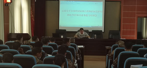 近日,云南金平分水岭国家级自然保护区管护局举办护林员业务能力培训班,局长刁继清作动员讲话,局全体干部职工和三个管护所护林员共计120余名人员参加培训。