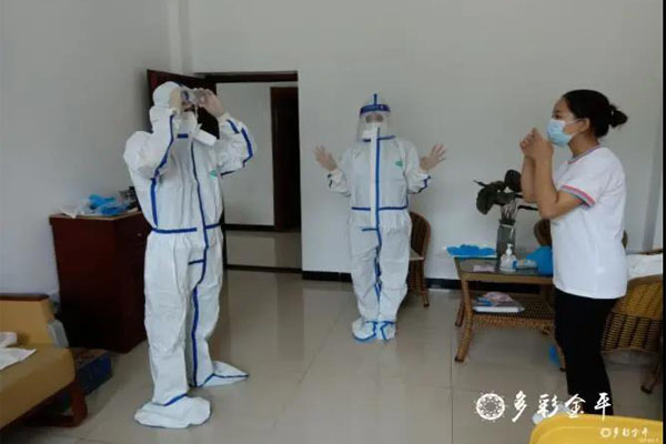 对15名民警进行了防护服穿脱技能培训和疫情防控知识培训。培训中,县医院感染科侬顺美护师首先详细讲解了“穿脱防护服”的用物准备、洗手步骤、穿脱步骤、注意事项、防护及消毒处理步骤等具体细节;理论知识讲解结束后,侬顺美进行了“穿脱防护服”的示范,全站民警认真观看演示,并进行了实际操作。